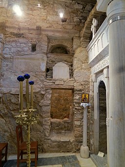[[File:Moni Fotodotis interior 6th to 12 AD 13M542.jpg|thumb|right|256px|[[commons: File:Moni Fotodotis interior 6th to 12 AD 13M542.jpg|Moni Fotodotis na Naxu, 6. až 12. století. Za průchodem uprostřed je ''baptistérion''.]] ]]