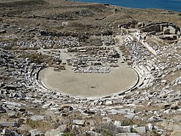 [[File:Ancient Greek theatre in Delos 02.jpg|thumb|left|256px|[[commons: File:Ancient Greek theatre in Delos 02.jpg|Divadlo na Délu, z helénistické doby.]] ]]