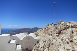Na jednom z vrcholků masivu stojí ve výšce 463 m n. m. kostel Narození Bohorodičky na hoře Kalamos, tedy Panagia Kalamiotissa, hned za ním stejnojmenný klášter, dnes opuštěný, a kolem nějaké další drobné stavby. Kostel z doby kolem roku 1600 je jednolodní, s centrální kopulí a jednou velkou apsidou. Před ním byla v 18. století přistavěna zvonice. Zasvěcení je unikátní, i když se jím nemyslí, že by se Bohorodička narodila na této hoře, tady je její narození pouze ctěno, a to na ochranu před pohromami. Unikátní je také ikona, která ovšem byla v nové době přenesena do „dolního“ kláštera.