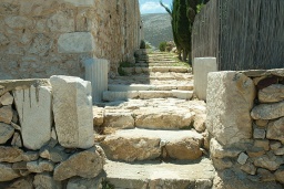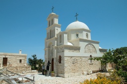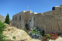 Obvodové zdi jsou z vnitřní strany nádvoří lemovány celami a pomocnými prostory, třeba řadou sprch a záchody v prostoru částí antických zdí, protože se zde počítá s větším množstvím poutníků. Dokud ke klášteru nevedla sjízdná silnice, tak tady poutníci přespávali všichni. Zdejší poutě se konají 8. a 9. září a jsou prý tuze slavné. Jejich součástí je kupodivu i noční výstup nahoru, k Panagia Kalamiotissa. Už to samo svědčí o veliké moci Životodárného Pramene i Bohorodičky Kalamiotissy, neboť ona cesta je pro větší počet lidí dost na pováženou. Rozhodně je kam spadnout, o často prudkém podzimním větru nemluvě. Tolik tedy místo Hyakinthií; jestli se přitom obdařují po antickém vzoru posměšky, to nevím. Kromě silnice vedou od kláštera tři značené cesty: posvátnou cestou ke Kasteli, nahoru na Kalamos, dolů přes Paralia Monastiri („Klášterní pláž“) do Chóry.