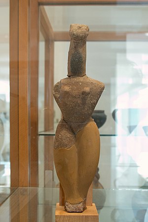 K nejstarším exponátům muzea patří pozdně neolitická keramika z let 5000–4400 před n. l. z lokality Ftelia na Mykonu. Stejného původu je snad také keramická ženská postava.