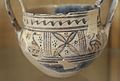 Řecké keramiky v geometrickém stylu je zde hojnost. Zajímavé jsou doklady osídlení Délu v podobě keramiky z 9. a 8. století před n. l. a také keramika z ostrova Rhéneia z 9. století před n. l., která ukazuje spíš na severokykladské kontexty kulturního stylu. Krom toho tu jsou hlavně výrobky z Paru a z Naxu, často docela pěkné (viz oddíl alba).