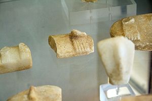 Kuriozitou je polotovar idolu variety Louros z Koufonisií, asi z raného 3. tisíciletí před n. l. Je to jediný předmět svého druhu! Šedá (zeleno-šedá) kamenná destička s reliéfem kykladského idolu, s rudimentárním náznakem paží jako pokračováním ramen.