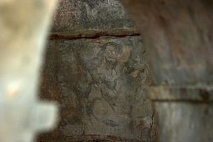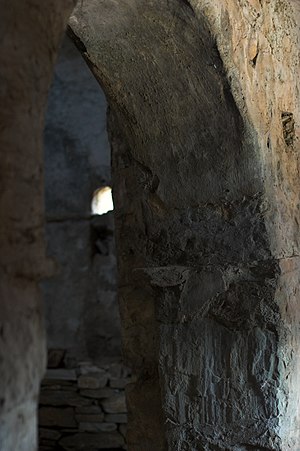 Kostel je vlastně vidět už dlouho předtím, ale nenabílené kamenné stavby si člověk v horách těžko všimne. Pro našince je docela zajímavé už to, když vidí v horách kompletně stojící kostel z 9. století, navíc docela opuštěný. Ikonoklastické fresky uvnitř samozřejmě nemohou zobrazovat božství antropomorfně, proto jako alegorii náboženských scén zobrazují ponejvíce kohouty, občas taky ryby. Kohouti jsou stylizovaní trochu archaicky, někteří mají přes krk jakési vlající šály, podobné pentle poletují i mezi nimi a různě kolem. Nepředpokládám, že by onen byzantský malíř znal archaické nebo starokykladské umění, leč genius místa se nezapře.