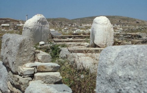 Dalším typickým darem posvátnému místu byly sfingy, třeba naxijská v Delfách nebo parská na Délu. Už koncem 7. století před n. l. se na podstavce soch občas píše dedikace nebo i jméno mistra. Lépe si to vše ukážeme na sochách až v Archeologickém muzeu na Délu i jinde.