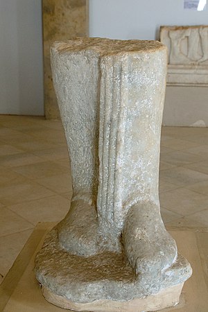 Monumentální mramorové anthémion tvaru lyry, tzv. samský typ. Mola to být koncovka monumentální pohřební stély nebo architektonického článku oltáře či menšího chrámu. Práce sochaře z Paru, 470-460 před n. l. Našel Antonios G. Mavros v kostele Agioi Pantes v Chóře Amorgu. Archeologická kolekce na Amorgu, inv. č. 39.