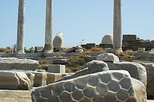 Na Artemísion i s torzy naxijského kolosa se můžeme podívat také z druhé strany, od moře. Povalují se tam obkladové bloky mramoru s reliéfem ve tvaru včelí plástve. Je jich tady hodně, apoň na jeden se pro jistotu podíváme blíž. Včela je jedním z Artemidiných oblíbených zvířat, jejím kněžkám se říkalo „včely“ (melissai), zvláště v Efesu. Mramorové nápodoby včelích pláství připomínají i legendu o tom, že první Apollónův chrám v Delfách byl z vosku a postavily jej včely. Skoro stejné obklady brzy uvidíme na Délu na chrámu bohyně Létó.
