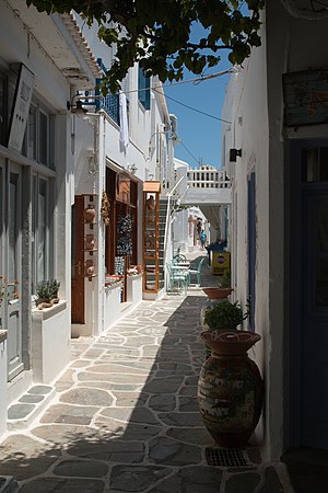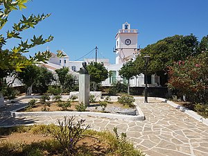 Tato větší ves hrající si na městečko má své půvaby – a kdo neviděl jiné kykladské Chóry, musí být jejími bílými uličkami a zákoutími okouzlen. Památečnosti se ovšem omezují na plácek s torzy stavebních článků z římské antiky až středověku, i kostely jsou spíš tuctové stavby z 19. století. Zásadní vadou je absence kastra. To totiž stávalo dalších 6 km na sever až severozápad. Nutno se smířit s tím, že Messaria je až dodatečně udělané novověké centrum ostrova, postavené ve vnitrozemí, na planině ve výšce asi 260 m, 5 km od přístavu Merichas.