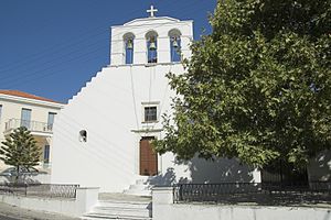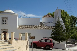 Písemně je doložená důkladná oprava roku 1052. Kostel je samozřejmě starší, většinou se přijímá, že z 9. století, ale možné jsou také starší datace některých jeho částí. Střechu má kamennou. Díky hojným přestavbám je roztomile asymetrický a tak půvabně změtený, že ani několik znalců nedokázalo bezrozporně zakreslit plán zdí a jejich časové vrstvy. Málem tady v byzantské době mimoděk postavili další „naxijský chrám“, i když neprůsvitný. (Viz info Naxijský chrám.)