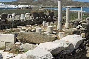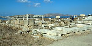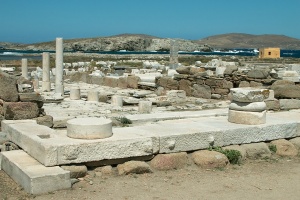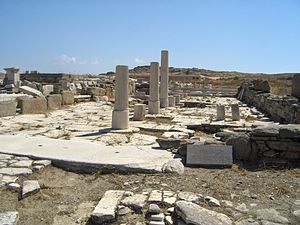 Hned vedle Domu Naxijských stála obří socha, ze které na místě samém zůstal jenom podstavec, zatímco části sochy samotné se rozkutálely po Délu.