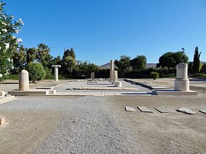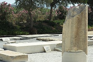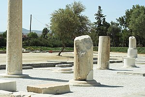 Najdeme tu zbytky Dionýsova chrámu z archaické doby a další pozoruhodnosti tradičního kultovního místa. Bohužel se toho zachovalo málo, protože okrsek je blízko moře a v rovině, takže v něm mokrý a prosolený zub času hlodal velice úporně. Dnes je to od moře skoro 2 km, ale na okraji saliniště, protože nadmořská „výška“ je nepatrná. Když tedy Poseidón vyhrožoval Dionýsovi spláchnutím, nebyla to pohrůžka nijak planá. Zatím však uspěl jen z malé části, možná díky Hermovi a Théseovi. Abychom však Poseidóna nekritizovali příliš, tak si musíme připomenout, že z archaické doby se ani jinde moc aspoň trochu stojících chrámů nezachovalo. Areál má pěknou parkovou úpravu , takže si v něm užijeme situovanost památek v zeleni, stranou městského ruchu. Je tady i maličké lokální muzeum.