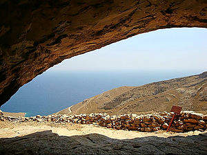 Christos Tsountas, který koncem 19. století vykopal starokykladské sídlo na Kastri u Chalandriani, prý předpokládal, že jeskyně nějak přitahovala pozornost dávných obyvatel. V ní – ani v jejím blízkém okolí – se sice nenašlo nic, ale na dalším vršku už ano. Je možné, že jeho intuice, spojující s jeskyní možnost nálezů starokykladské památky v širším okolí, nechtěně způsobila omyl. Mohla zapříčinit nebo prohloubit spojitost s Ferekýdem, který ovšem žil až v 6. století před n. l. Nicméně jeho vodítko, tedy tradice o významu jeskyně, se muselo odněkud vzít. Buď už tehdy patřilo k lidovému podání, nebo mělo nějaký mně neznámý literární zdroj. Nebo si to celé vymyslel? Nebo Ferekýdés opravdu přemítal v kontextech dávných Kyklad? To asi ne, i když excentrik to byl.