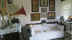 Kolem chalupy jsou různé rurální stavby, jaké známe z řeckého venkova, třeba mlat (aloni), mlýn atd.