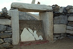 Vandalismus je u řeckých ostrovních památek naštěstí ojedinělý. O původci tohoto poničení jsem na místě slyšel dvě verze, jak se na homérskou epiku sluší. Podle jedné to potloukl rozjívený athénský puberťák, jemuž holka nedala. Podle druhé zase švédský bankovní úředník v hrubě nestřízlivém stavu. Možné je obojí, poškození je tam víc.