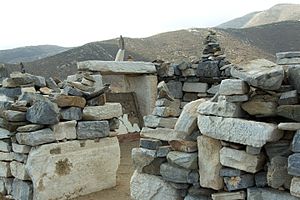 Už jsme si říkali o tradici, podle které se na ostrově Íos nachází Homérův hrob. Větší zbytky mohyly najdeme úplně na severu ostrova, místo je upravené a přístupné, včetně nedalekého parkoviště. Vedle této mohyly je prý i hrob Homérovy matky. Toto podání je už antické, v 2. století n. l. o něm ve svém cestopisu referuje Pausaniás. Když se ve své Cestě po Řecku zabývá Delfami (X, 24, 2), popisuje mezi památkami kolem Apollónova chrámu také nápis na podstavci Homérovy sochy, který se týká ostrova Íu. Text nápisu v Delfách zní: „...ostrov Íos je matčina vlast, ta jednou tě přijme, až budeš mrtev spát...“ Pausaniás tento nápis komentuje: