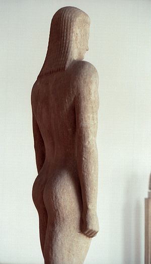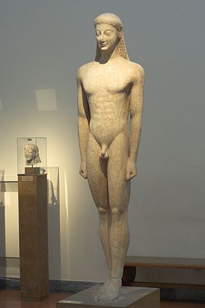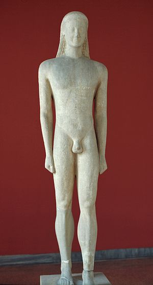 Pohřební kúros je mírně nadživotní, i s podstavcem má výšku 214 cm. Materiálem je naxijský mramor, povrch je trochu erodovaný solí. Různé prameny uvádějí rozličné datace, většinou kolem roku kolem roku 550 před n. l. Je příkladem východořecké (iónské) sochařské práce, která představuje štíhlejší typ postavy ve specifické stylizaci, zdůrazňující jednotu něžnosti a mužné akceschonosti.