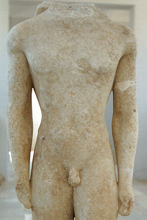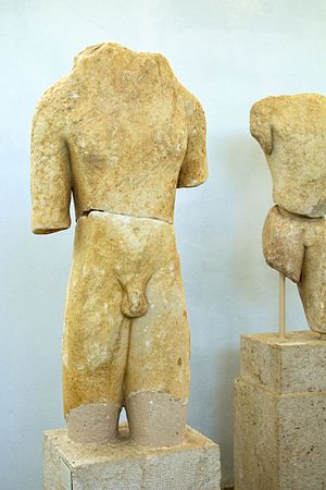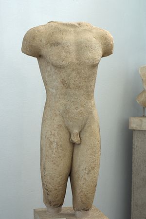 Spíše kuriozitou je maličký oblečený kúros (foto) až z ostrova Samu. Oblečené kúry občas potkáme spíš na východě Řecka nebo v kontaktu s barbarským prostředím, ostatně, tenhle přišel na Délos ze Samu.