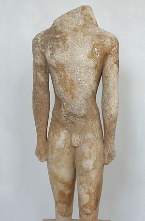 Teď si projdeme kúry chronologicky. Nejstarší torza kúrů, z 3. čtvrtiny 7. století před n. l., pocházejí Naxu. Bohužel ne vždy rozpoznáme, co bylo záměrem výtvarné stylizace, a co je dílem eroze. Druhý z nich je zřetelně ploše stylizovaný. Hodil by se do páru s onou koré, kterou Níkandra z Naxu věnovala Artemidě na Délos, a která teď je v Národním muzeu v Athénách, i když není tak velký.