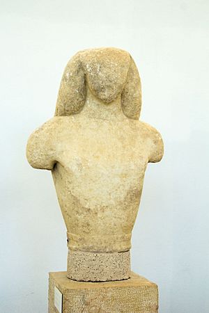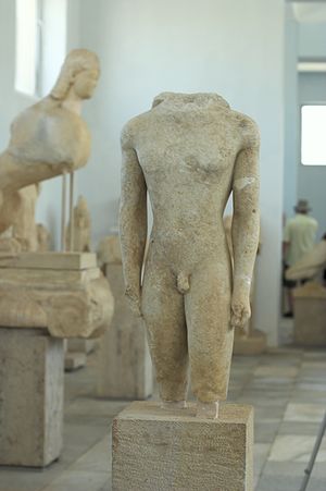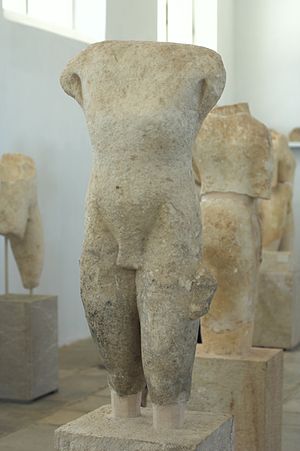 Je tu i podstavec pro sochu archaického kúra s nápisem: „Udělal a věnoval Euthykartidés z Naxu.“ Patří mezi nejstarší autorsky podepsané sochy.