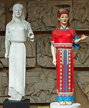 Tyto sochy stály u chrámů, nejčastěji bohyň, zvláště Artemidy, ale i Athény. Bývají také náhrobní, občas také jako reliéfy. Velikostí připomínají živého člověka, někdy jsou v mírně nadživotní velikosti kvůli monumentálnímu dojmu při senzuální záměně za měřítko 1:1, častěji naopak ve velkosti kolem ¾ životní, navozující bezprostřední důvěrnost. Na rozdíl od kúrů neznáme koré kolosálních rozměrů.