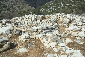 K archeologickému areálu vede od konce silničky nad zálivem Panormos pěkná pěšina. Kousek za vstupem do areálu vidíme původní vstup do městečka. Je tu dost masivní pradávná zeď, po několika prastarých schodech vstupujeme do uličky u ní. Postupně se ukazuje výhled na zbytky městečka. Jeho ulice jsou překvapivě úzké a domy malé. Na horním konci jsou zbytky opevnění a vedle nároží (asi hradby) opravdu rostou malé mandlovníky. Celek působí i přes malé rozměry dost monumentálně.