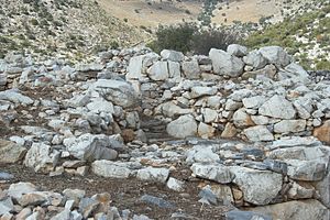 Na poměry dané civilizace to není moc staré sídlo, vzniklo až někdy v 28. století před n. l., takže patří k fázi (skupině, kultuře) zvané Keros-Syros. Někdy koncem 3. tisíciletí (tedy koncem rané doby bronzové, vrstva EC III) bylo dokonce opevněné, a pak upadlo. Obojí asi souvisí s mínójskou invazí z Kréty. Není zcela jasné, zda opevnění stavěli původní obyvatelé a nebylo jim pak nic moc platné, nebo zda tady předřečtí Kréťané chtěli vybudovat opěrný bod, ale pak to vzdali. Možné je prý dokonce obojí.