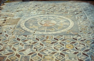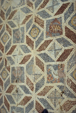 I člověk, který je mozaikami spíš přesycený, se tady zaraduje, že tohle je prostě něco jiného, než obvyklá povinná nuda! Datovat to neumím, snad je to z 5. století n. l., možná je to starší, možná ne. Něco podobného bychom čekali v sousedství baptistéria nějaké větší předjustiniánovské křesťanské baziliky. Celková kompozice i řada detailů je ovšem v rámci křesťanského prostoru dost na pováženou, jak hned uvidíme. Celkové uspořádání mozaiky by se dobře hodilo do nějakého hypotetického chrámu Proklova novoplatónského náboženství, nebýt ovšem Krista uprostřed a dvanácti apoštolů kolem. Mozaika zobrazuje svět, jak je řízený z centra, prostřednictvím řady mezistupňů, až po naše lidské prostředí.