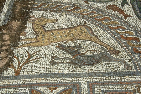 Uprostřed je únos Európy, kolem romanticky provedená zvířata: lovecká scéna, nebo zase páv, který je na Kykladách až podezřele oblíbený.