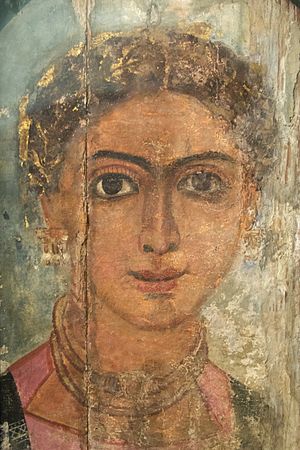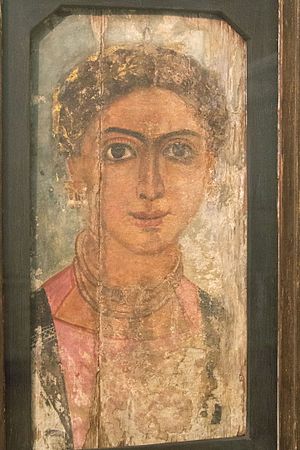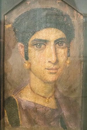 Portrét mladé ženy. Egypt, oáza Fajjúm, 150 až 200 n. l. Enkaustika na dřevě. NG Praha, O 1420.
