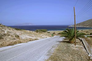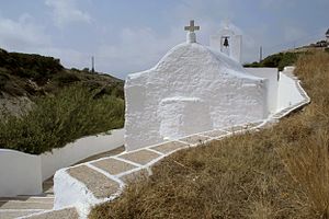 Je to jednoduché. Napřed se jde do kopce, až do sedla mezi horami ve výšce asi 300 m. Podél cesty jsou typické ostrovní kostelíčky; výhledy na Chóru, Skarkos a přístav lákají k ohlédnutí. Další kostel je kousek před sedlem. Pak se obzor konečně promění a před námi se objeví záliv na severovýchodě ostrova, na obzoru vlevo také silueta malokykladské Iraklie. Na pobřeží čeká příjemná pláž s tamaryšky.