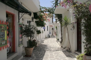 Hlavní město ostrova Paru se kupodivu nejmenuje Chóra, nýbrž Parikia (Παροικιά, Paroikia), což znamená „obydlí Parských“. Má asi 4500 stálých obyvatel. Je významnou křižovatkou lodních linek, leč dalo by se sem z Athén taky přiletět. Je to půvabné kykladské městečko, bohužel dost plné turistů, kteří oceňují jeho malebnost. Místy je skutečně nádherné, místy spíše líbivé. Viz album Parikia. [1]