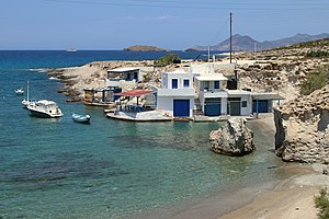 Směrem na západ vidíme vesnici Pachena, za kterou je široká mírná pláž. Za ní je třeba přejít malý poloostrov a ocitneme se v místě zvaném Ag. Konstantinos, podle jednoho z kostelů. Nenápadná polosamota skrývá řadu půvabů koupačských i jiných. Jsou tady i syrmata, tedy hloubené lodní garáže, přestavěné na výletní chalupy. Specialitou je jeskynní kaple u pramene.