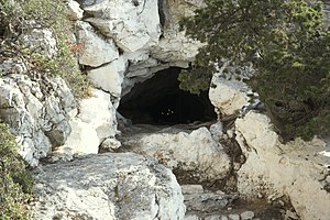 Před jeskyní Agios Prodromos visí na větvi borovice zvon, jeskyně je totiž chápaná jako kostel. Vchod do ní je ovšem mnohem svízelnější než do sousední Kyklopovy jeskyně. Vstupní výklenek se rychle zúží a sníží tak, že je nutné lézt po čtyřech, mohutnější lidi po břiše, asi tak 6 metrů daleko, naštěstí skoro vodorovně. Když tak člověk leze chvilku poté, co málem šlápnul na menší zmiji, tak mu přitom není úplně dobře, ale zvládne to bez potíží každý. Čelovka nebo podobná světluška je nutná.