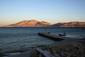 Pak jsme jeli zase na Pano Koufonisi. Paní bytná se tvářila šibalsky, ale já se už na Keros neptal. Raději jsem jej z terasy pečlivě prohlížel triedrem. Hned naproti jsou kousek nad pobřežím jasně vidět základy zrušené malé vísky, nad nimi pozůstatky nějakých terásek a cesty. Zrovna anticky, natož bronzácky, to však nevypadá, nejspíš to ani nemusí být nijak moc staré. Není ovšem jasné, proč toho tam není vidět víc, pokud to není prastaré. Ani na opuštěné výkopy to moc nevypadá.