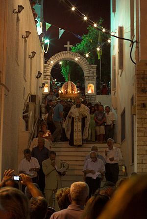 K radostem patří hlavně svátky, a těch je opravdu hojně, s mnohými z nich se pojí specifické druhy lahůdkového pečiva. Velkým srpnovým svátkem je všude v Řecku Koimésis (Kimisis), tedy „Zesnutí“ Panny Marie, na Západě se říká Nanebevzetí. Ariadniným nábřežím a městem jde večer procesí s ikonou.