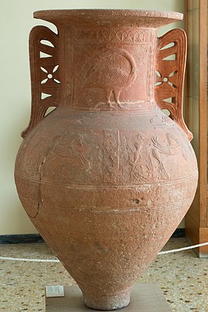 Velký pohřební pithos s reliéfy, kykladská práce (Naxos, Paros, Mélos?), 7. století před n. l., nejspíš kolem roku 675 před n. l.