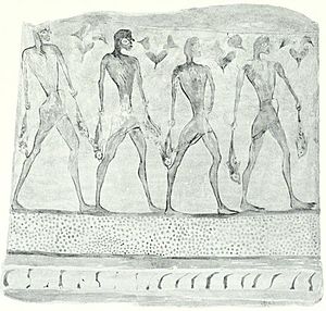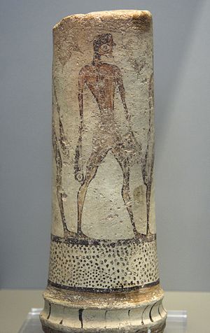 Zobrazení je ovlivněné egyptským kánonem, ale proporce jsou jiné a celek je dynamičtější.