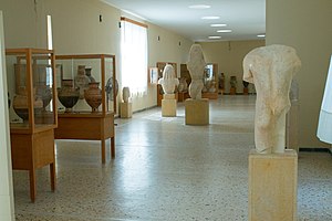 Muzeum antické Théry vystavuje několik torz kúrů, bohužel silně erodovaných.