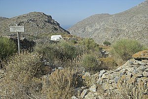 Turistická cesta č. 4 je vlastně menší okruh s Ormos Aigialí do Lagady, Tholárie a zpátky. Teď se budeme věnovat úseku mezi Lagadou a Tholárií. Obě tyto vesnice jsou stejně vysoko, což ovšem neznamená, že by se nějak moc chodilo po rovině, pouze se nevyskytnou zásadní stoupáky. Navíc je tady řada paralelních cest, některé z nich dobře průchozí a zajímavé. Na poměry Amorgu je tu nezvykle zeleno, zvláště v údolích a roklích.