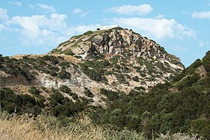 Kus dál do vnitrozemí, přibližně uprostřed východní části ostrova, stojí na nápadném vršku kostel Panagia Kastriani. V antických časech tady stávala dórská pevnost, později lidově zvaná Kastro. Na stavbu kostela použili antický materiál. Víc fotek z dórského Kastra je v albu.
